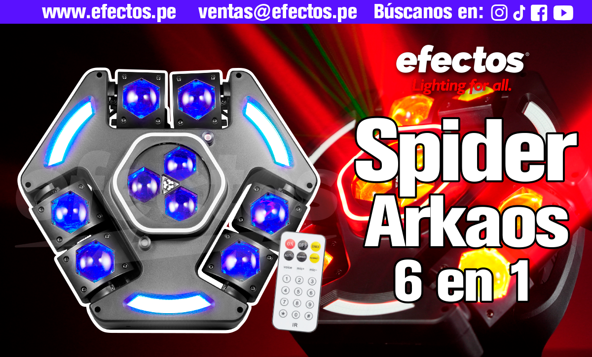 Spider Arkaos 6 en 1 RGBW Dmx Luces DJ Disco Karaoke