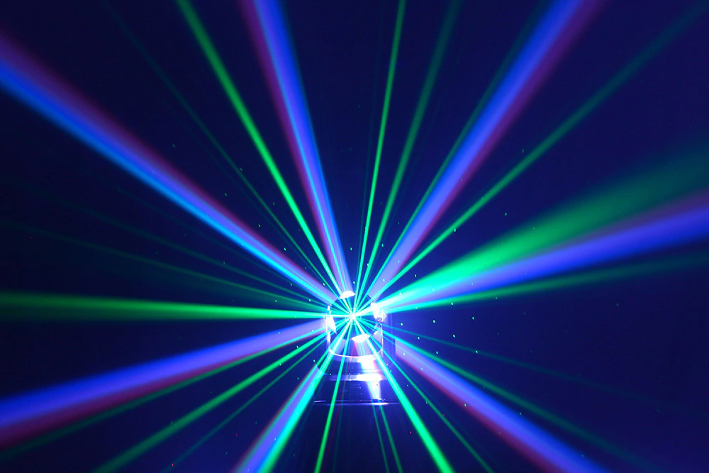 Combina 4 potentes LEDs y strobos ámbar, así como sus láseres de colores para fabuloso espectáculo en tus eventos.