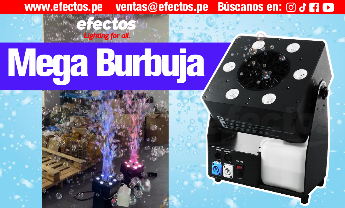 Última generación de máquinas de burbujas para escenarios, la más potente del mercado + entrada DMX y luces RGBW.